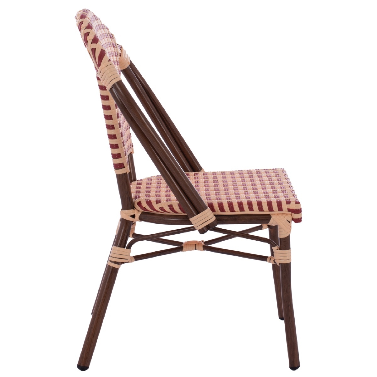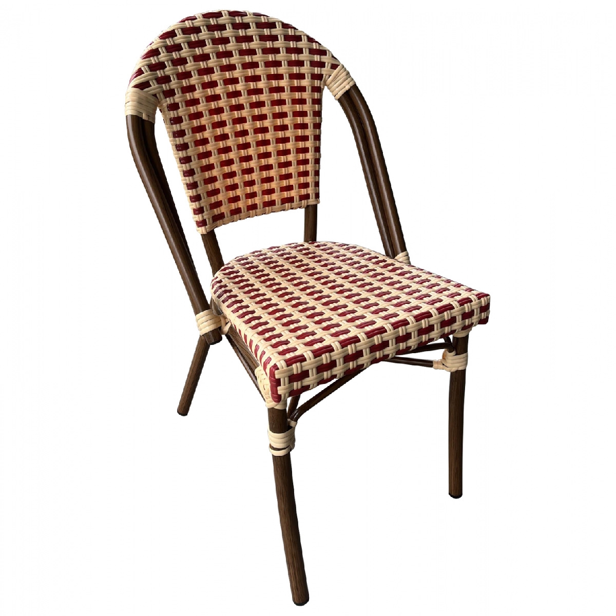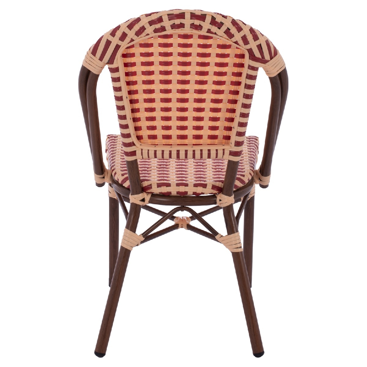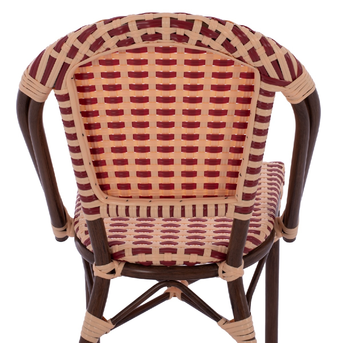 Η καρέκλα εξωτερικού χώρου ΗΜ5817.01 είναι μια λιτή και όμορφη καρέκλα, τύπου bistro, που θα ταιριάξει με πολλά άλλα έπιπλα για το μπαλκόνι ή τον κήπο σας. Το χρώμα ολόκληρου του σκελετού που παρομοιάζει το ξύλο bamboo είναι καφέ, ενώ η πλέξη wicker με το συνθετικό rattan είναι σε χρώμα μπεζ-κόκκινο. Η αίσθηση που αφήνει, είναι αυτή της άνεσης, τόσο στο κάθισμα, όσο και στην φαρδιά πλάτη. Δεν διαθέτει μπράτσα, πράγμα που αφήνει ακόμα μεγαλύτερη ελευθερία κινήσεων, για όσους προτιμούν αυτό το στυλ καρέκλας. <br />