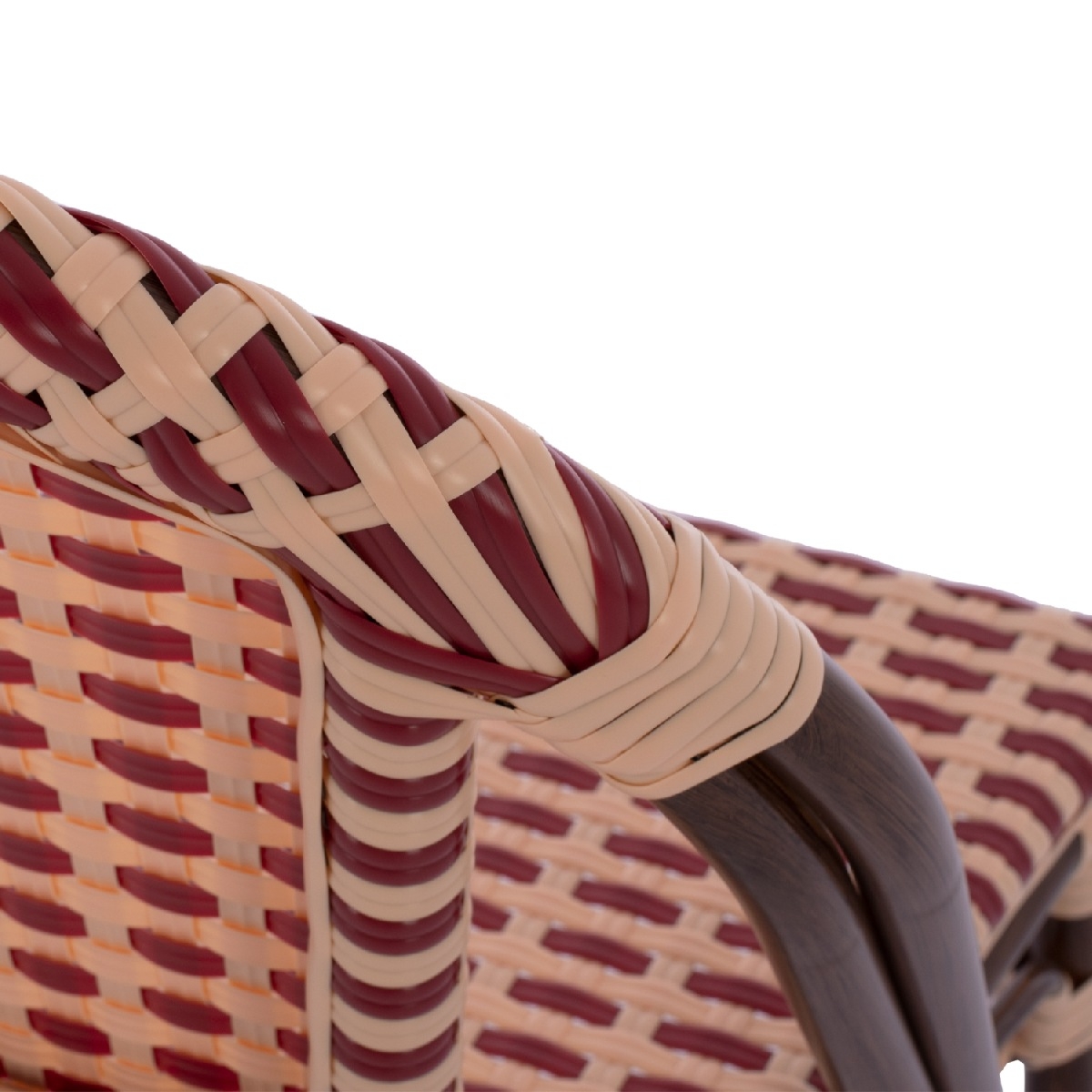 Το κάθισμα και η πλάτη της καρέκλας είναι σε πλέξη Wicker από συνθετικό Rattan. Το Wicker δεν είναι υλικό, είναι μέθοδος κατασκευής επίπλων κυρίως για εξωτερικούς χώρους. Πρόκειται για μια αρχαία τεχνική, κατά την οποία οι τεχνίτες περνούν το φυσικό ή συνθετικό υλικό από ατμό και στη συνέχεια το λυγίζουν στο σχήμα που θέλουν, όπως για παράδειγμα το πλέκουν επάνω στους διάφορους σκελετούς των επίπλων για να δώσουν αυτό το πολύ ιδιαίτερο look.<br />