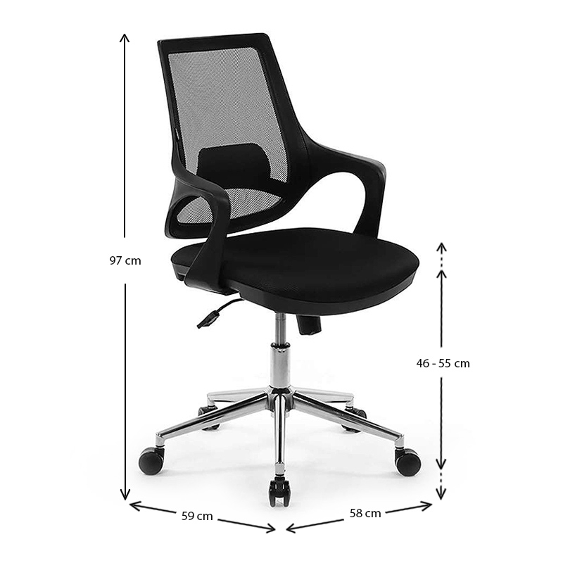 <li><strong>Διαστάσεις καρέκλας:</strong> Μήκος 58 x Βάθος 59 x Ύψος 97 εκ.</li>