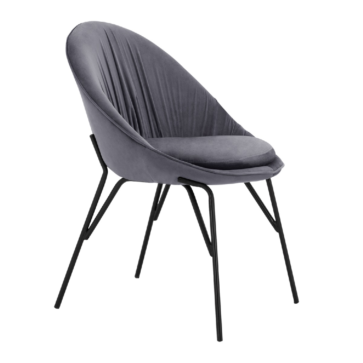 Η καρέκλα KELSEY είναι επενδυμένη με ύφασμα βελούδο σε γκρι απόχρωση με μεταλλικό μαύρο σκελετό.<br />
