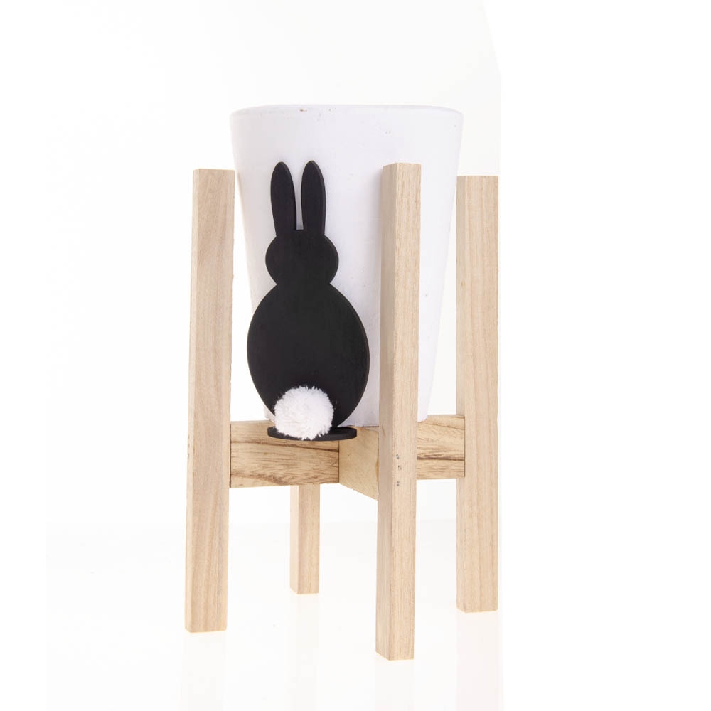 Κεραμικό κασπώ σε ξύλινη βάση διακοσμημένο με ξύλινο λαγό σε μαύρο χρώμα 17x17x26 εκ