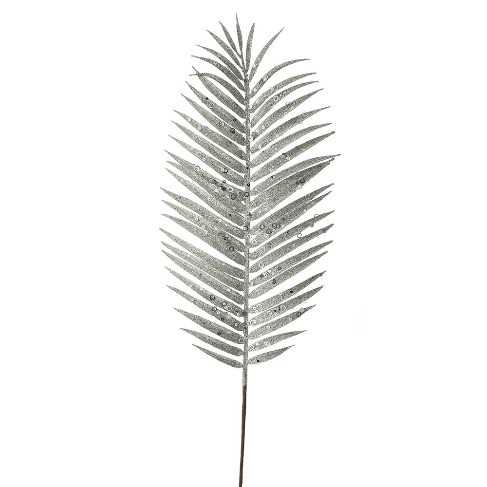 Κλαδί φοίνικα χριστουγεννιάτικο διακοσμητικό με σιελ glitter σετ των τριών τεμαχίων 70 εκ