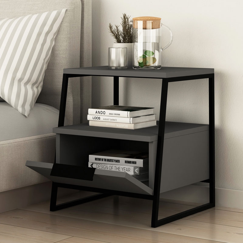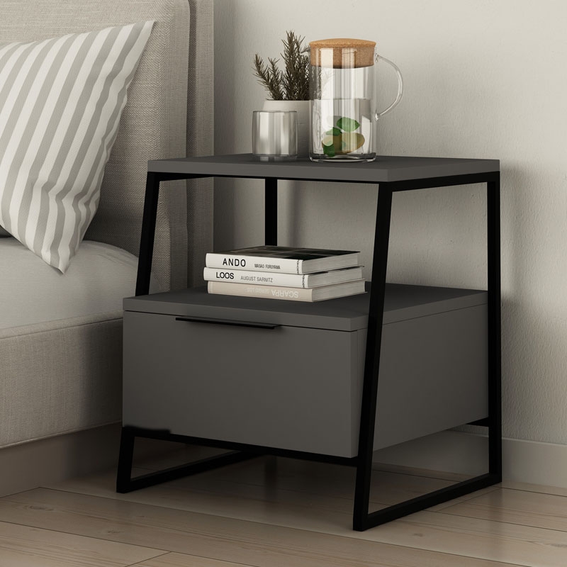 Κομοδίνο μελαμίνης Pal Megapap χρώμα ανθρακί 45x40x50εκ.<br></span>
