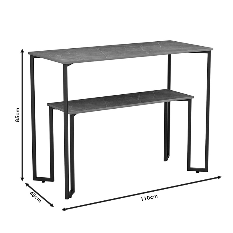 <p><img src="https://www.pakoworld.com/various_images/tools_small.png" style="border-width: 0px; border-style: solid; margin-left: 3px; margin-right: 3px; float: left; height: 35px; width: 35px;" valign="center" alt="Οδηγίες συναρμολόγησης" title="Οδηγίες συναρμολόγησης"><br /><br /><a href="/products_pdf/pakketo_230-000010.pdf" target="_blank">Πατήστε εδώ</a> για να κατεβάσετε τις Οδηγίες Συναρμολόγησης του Προϊόντος.</p><hr style="color:#bdc3c7">Κονσόλα Homer pakoworld γκρι μαρμάρου 110x48x85εκ<br><br>Για εσένα που αναζητάς ένα μοντέρνο έπιπλo στο χώρο σου η σειρά Homer με υψηλή ποιότητα και σχεδιασμό κατασκευής θα απογειώσει την αισθητική του χώρου σου. Μία εντυπωσιακή πρόταση διακόσμησης που θα σας εντυπωσιάσει.<br><br>Τεχνικά χαρακτηριστικά:<br>* Κατασκευή από μοριοσανίδα με επένδυση μελαμίνης και μέταλλο υψηλών αντοχών στη φθορά και στο χρόνο.<br>* Προσφέρεται σε χρώμα γκρι μαρμάρου<br>* Φέρει 2 διαφορετικές επιφάνειες.<br>* Ο ψηλός φινετσάτος σχεδιασμός σας επιτρέπει να αξιοποιήσετε στο έπακρο τους μικρούς χώρους.<br><br>Διάσταση:<br>Μήκος: 110εκ.<br>Πλάτος: 48εκ.<br>Ύψος: 85εκ. <br><br>Παρατηρήσεις:<br>Το προϊόν παραδίδεται αμοντάριστο, σε εργοστασιακή συσκευασία και με αναλυτικό οδηγό συναρμολόγησης. Η χρωματική απόχρωση του προϊόντος ενδέχεται να διαφέρει ελαφρώς σε σχέση με την φωτογραφική απεικόνισή του στην οθόνη σας<br>