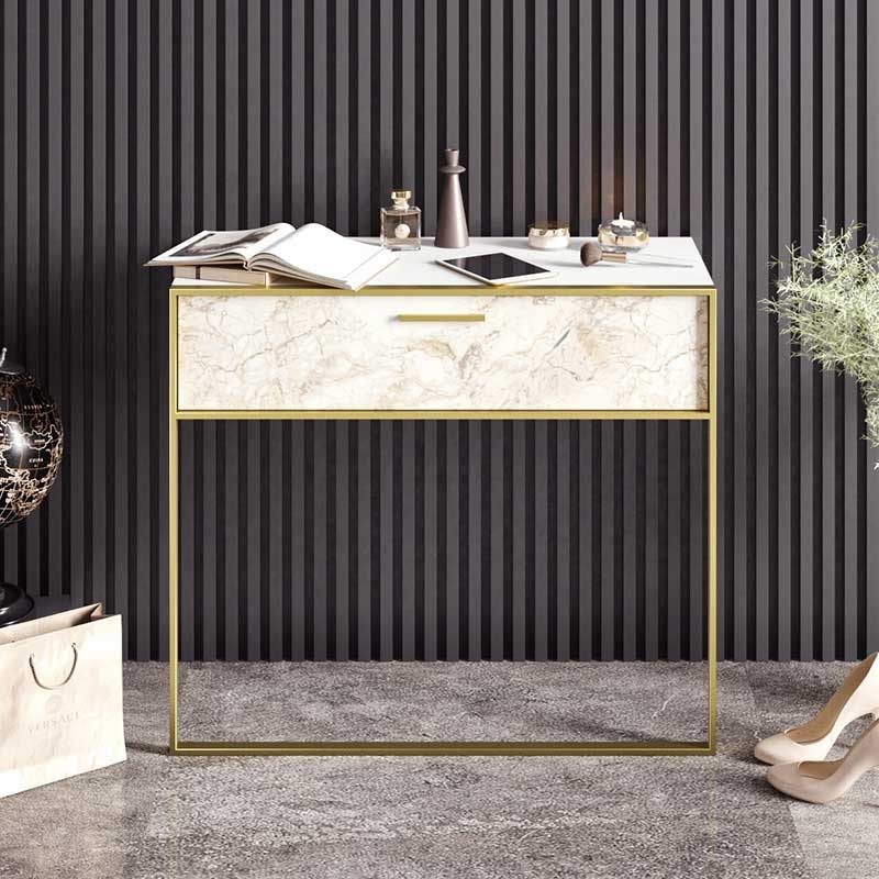 <p><img src="https://www.pakoworld.com/various_images/tools_small.png" style="border-width: 0px; border-style: solid; margin-left: 3px; margin-right: 3px; float: left; height: 35px; width: 35px;" valign="center" alt="Οδηγίες συναρμολόγησης" title="Οδηγίες συναρμολόγησης"><br /><br /><a href="/products_pdf/pakketo_071-000855.pdf" target="_blank">Πατήστε εδώ</a> για να κατεβάσετε τις Οδηγίες Συναρμολόγησης του Προϊόντος.</p><hr style="color:#bdc3c7">Κονσόλα Marble pakoworld χρώμα λευκό μαρμάρου-χρυσό 90x38,5x77εκ<br><span class="csDC4A80"><br></span><span class="cs8926E06">Αναζητάς μία κονσόλα που να ξεφεύγει από τα συνηθισμένα; Αυτό το μοντέρνο έπιπλο θα απογειώσει την αισθητική του χώρου σου, προσφέροντας σου παράλληλα χώρους αποθήκευσης χρηστικών αντικειμένων. Μία funky πρόταση διακόσμησης για τους χώρους υποδοχής σας.<br><br></span><span class="cs5BEC2C28">Τεχνικά χαρακτηριστικά:<br></span><span class="cs8926E06">* Κατασκευή από μοριοσανίδα με επένδυση μελαμίνης υψηλής ποιότητας με αντοχή στην καταπόνηση και στον χρόνο. Προσφέρεται σε χρώμα λευκό με αποχρώσεις μαρμάρου</span><br><span class="cs8926E06">* Στήριξη σε μεταλλικό σκελετό σε χρώμα χρυσό. Η σύνθεση στηρίζεται στο τοίχο.<br>* Περιλαμβάνει ένα ντουλαπάκι <span class="cs8926E06">για την αποθήκευση μικροαντικειμένων.<br><br></span><span class="cs5BEC2C28">Διάσταση επιδαπέδιου επίπλου:<br></span><span class="cs8926E06">Μήκος: 90εκ.<br>Πλάτος: 38,5εκ.<br>Ύψος: 77εκ. <br><br></span><span class="cs5BEC2C28">Παρατηρήσεις:<br></span><span class="cs8926E06">Το προϊόν παραδίδεται αμοντάριστο, σε εργοστασιακή συσκευασία και με αναλυτικό οδηγό συναρμολόγησης. </span><br><span class="cs8926E06">Η χρωματική απόχρωση του προϊόντος ενδέχεται να διαφέρει ελαφρώς σε σχέση με την φωτογραφική απεικόνισή του στην οθόνη σας</span></span><br>