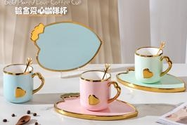 Κούπα με πιατάκι και κουταλάκι χρυσή Καρδιά