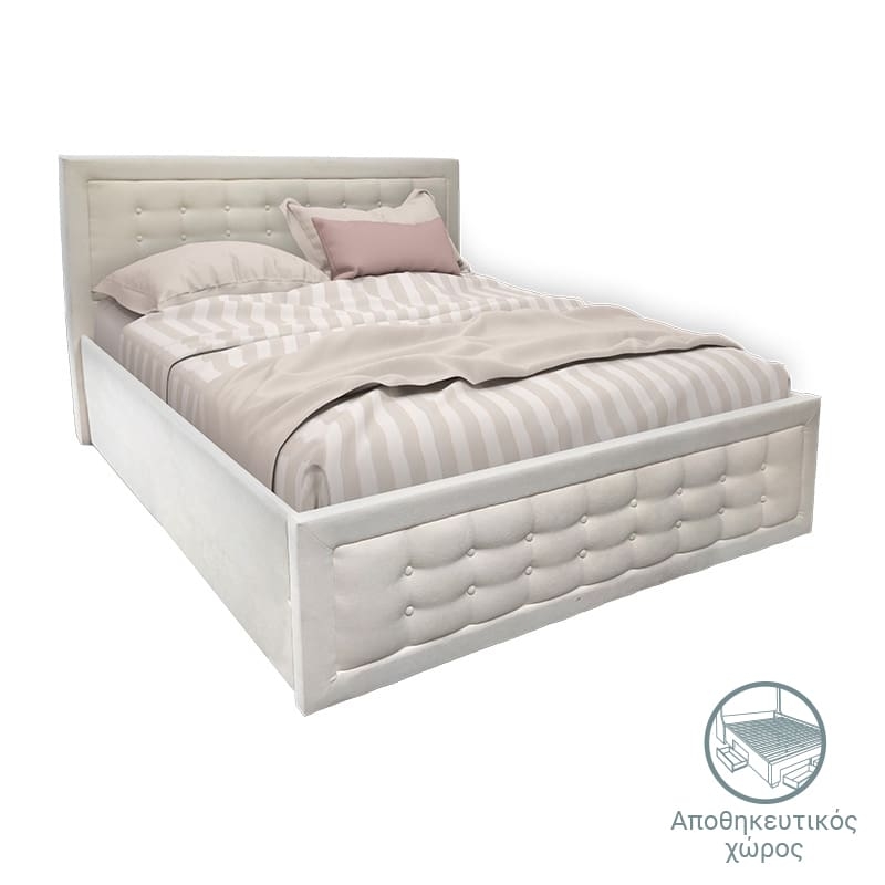 Κρεβάτι Kiev pakoworld ύφασμα εκρού αποθηκευτικός χώρος 160×200εκ</p>