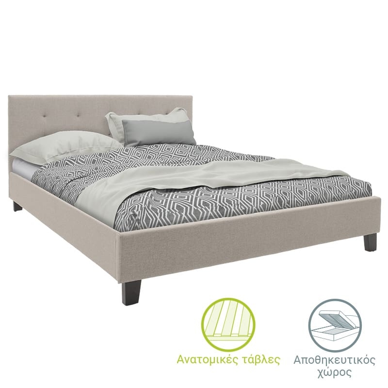 Κρεβάτι Mago pakoworld διπλό ύφασμα εκρού 150×200εκ</p>