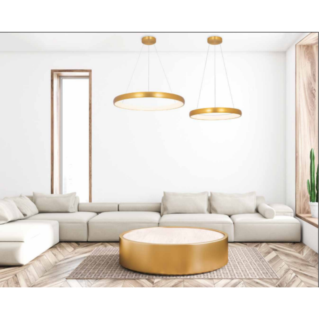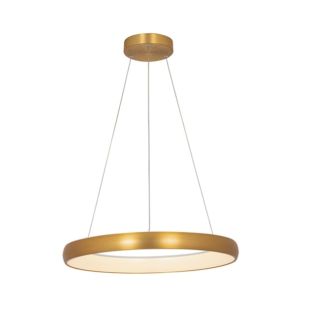 <div><span style="color:#000000; font-family:verdana,geneva,sans-serif; font-size:14px">Κρεμαστό φωτιστικό LED με ένα κύκλο από αλουμίνιο σε Χρυσό χρώμα με κάλυμμα από ακρυλικό. Διαθέτει ενσωματωμένο φωτισμό LED συνολικής ισχύος 50W και αποδίδει 4000Lm σε θερμό φωτισμό (3000Κ). Είναι συμβατό με Dimmer (Triac) για να ρυθμίσετε τη φωτεινότητα στα επίπεδα που επιθυμείτε. </span><span style="font-family:verdana,geneva,sans-serif; font-size:14px">Η ανάρτηση είναι ρυθμιζόμενη ώστε το φωτιστικό να προσαρμοστεί στο χώρο τοποθέτησής του.</span></div>