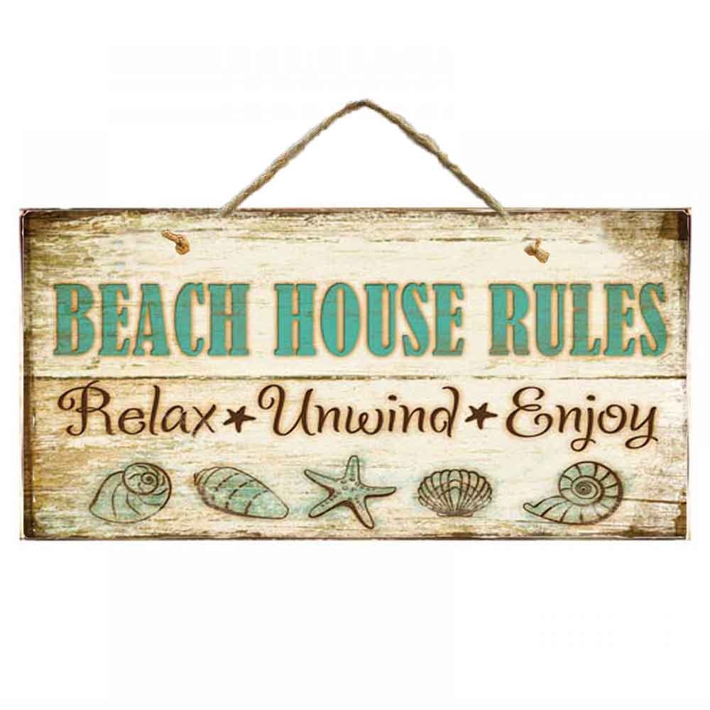 Ξύλινος χειροποίητος πίνακας beach house rules