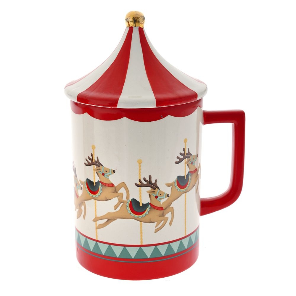 Λευκή κόκκινη χριστουγεννιάτικη κούπα με θέμα το τσίρκο 11x9x16 εκ