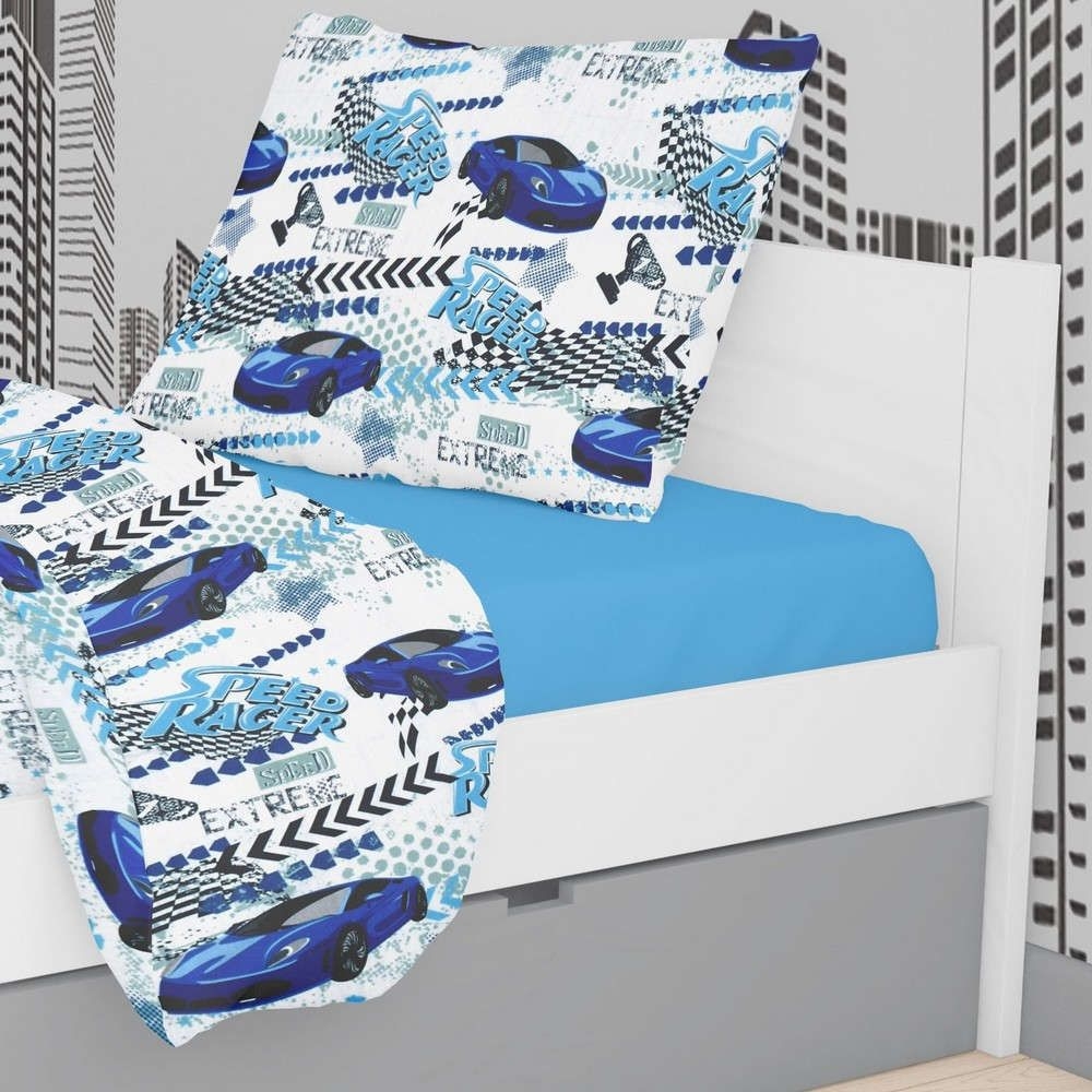 Μαξιλαροθήκη Παιδική Εμπριμέ Speed Racer 291 Rotary Print White-Blue DimCol 50Χ70 50x70cm Βαμβάκι-Πολυέστερ