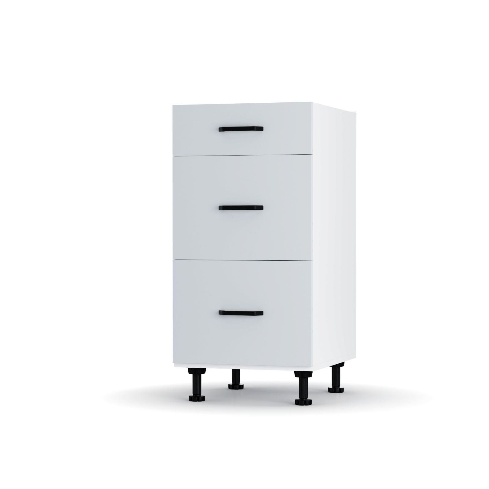 <p>Modest Επιδαπέδιο Ντουλάπι, Ευρωπαϊκής κατασκευής, εξαιρετικής ποιότητας και υψηλής αντοχής σε γκρι απόχρωση. Το έπιπλο διαθέτει τρία συρτάρια για την αποθήκευση αντικειμένων καθώς και τρία χερούλια. Μπορείτε να το συνδυάσετε με τα υπόλοιπα ντουλάπια κουζίνας της σειράς Modest.<br><br>