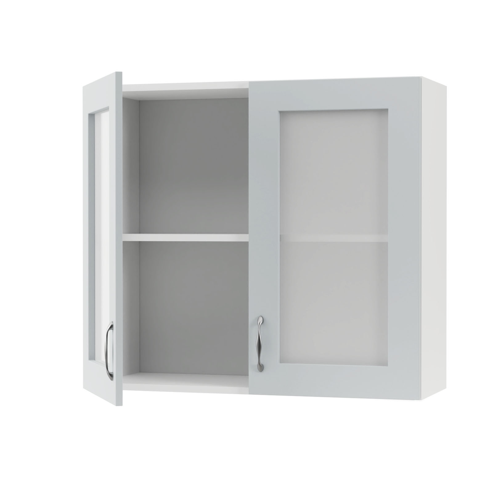 <p>Επιτοίχιο Ντουλάπι-Βιτρίνα Modest, Ευρωπαϊκής κατασκευής, εξαιρετικής ποιότητας και υψηλής αντοχής σε γκρι απόχρωση. Το έπιπλο διαθέτει, δύο ανοιγόμενα πορτάκια με τζάμι, ένα ράφι για την τοποθέτηση αντικειμένων καθώς και δύο μεταλλικά χερούλια. Μπορείτε να το συνδυάσετε με τα υπόλοιπα ντουλάπια κουζίνας της σειράς Modest.<br>