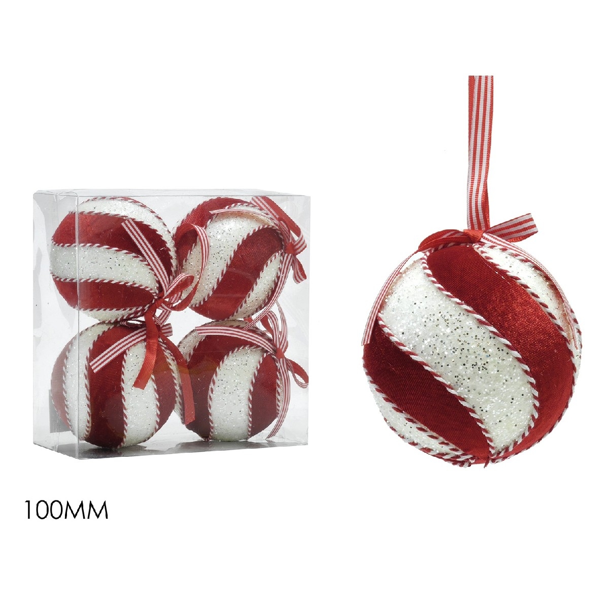 ΜΠΑΛΑ ΜΕ ΔΙΑΚΟΣΜΗΣΗ ΛΕΥΚΟ/ΚΟΚΚΙΝΟ ΒΕΛΟΥΔΟ Φ10CM ΣΕΤ 4ΤΜΧ