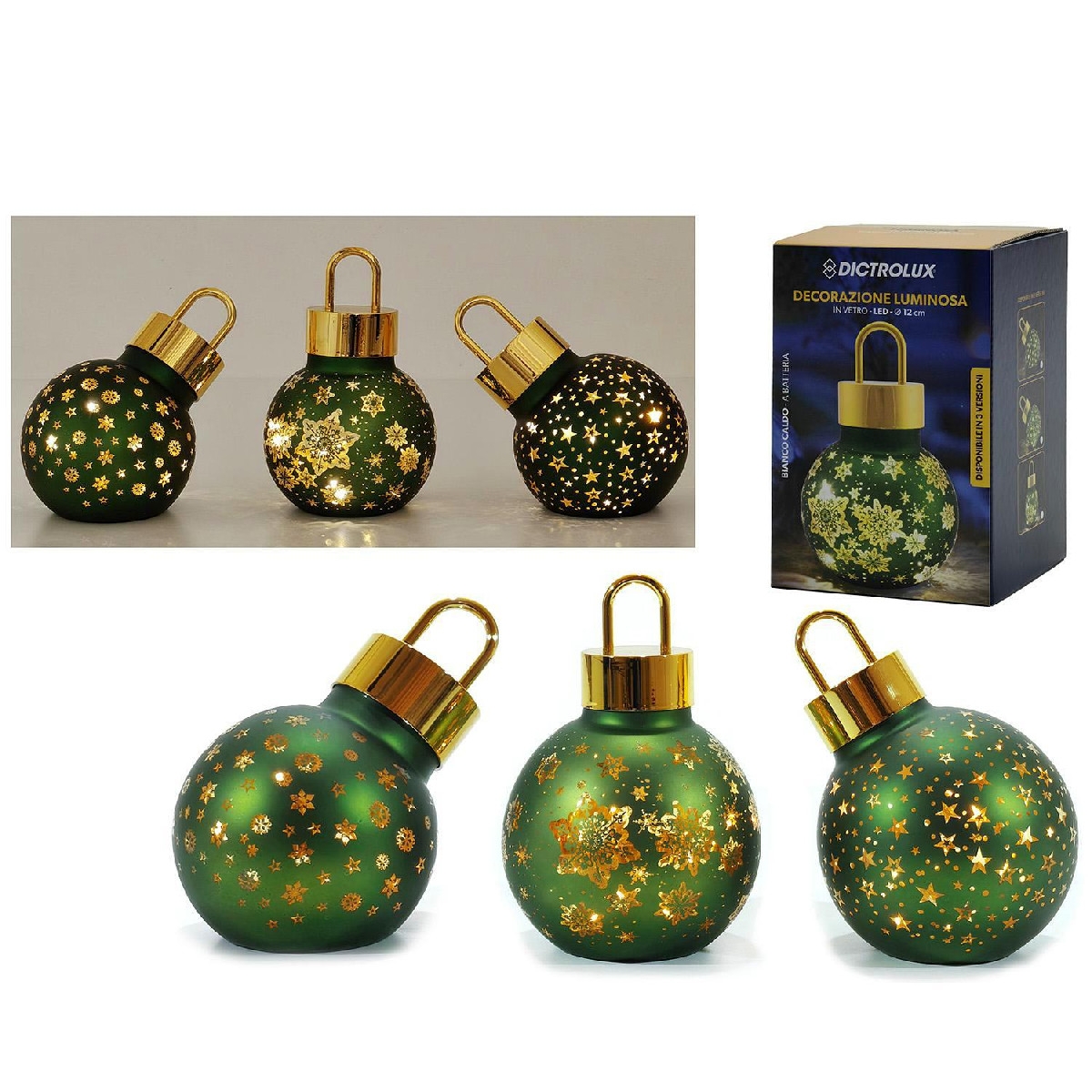 <p>Μπάλα πράσινο γυαλί φ12cm σε 3 σχέδια.</p>