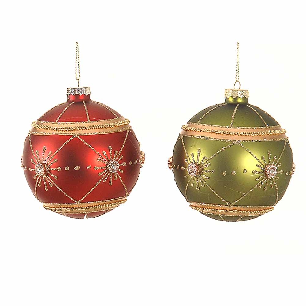 Μπάλες γυάλινες σε κόκκινο και πράσινο χρώμα διακοσμημένες με χιονονιφάδες σετ των δύο 10 εκ