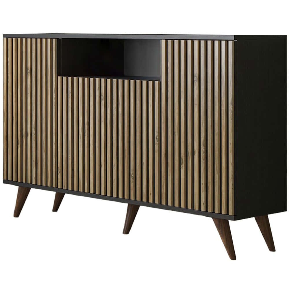 Μπουφές 787CDL1707 140x35x91cm Pine-Black Μοριοσανίδα,Mdf