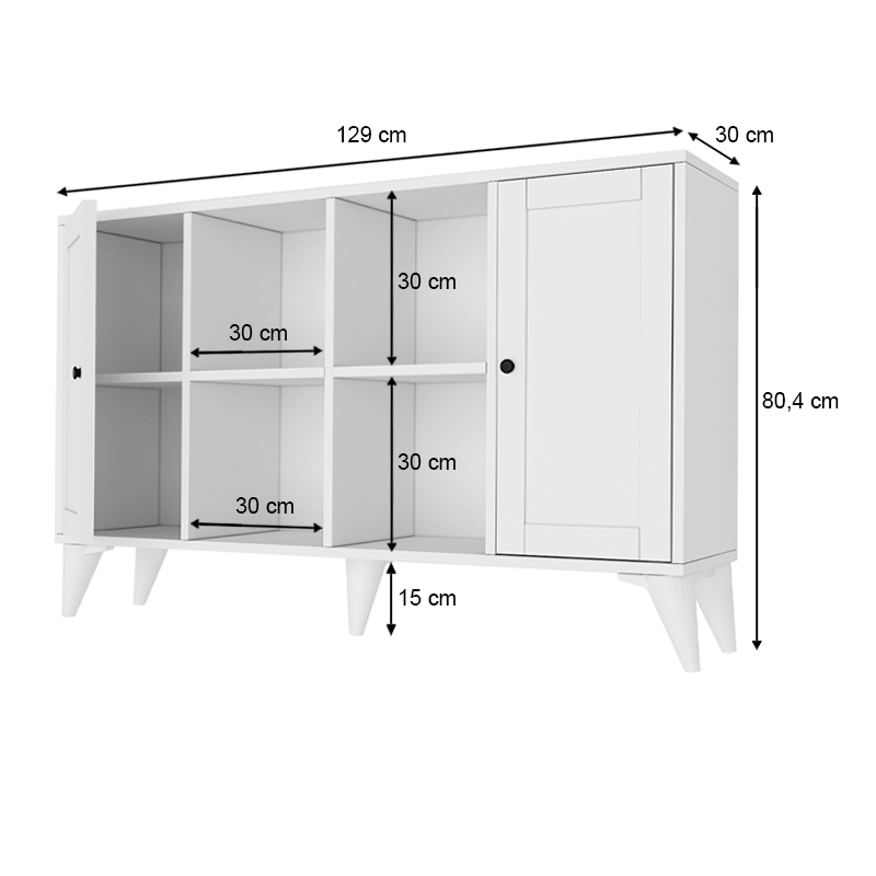<li>Διαστάσεις: Μήκος 129 x Βάθος 30 x Ύψος 80,4 εκ.</li>