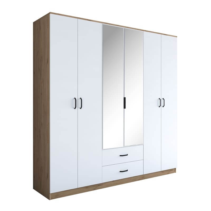 <p>Ντουλάπα ανοιγόμενη με καθρέπτη Wakro pakoworld λευκό-καρυδί μελαμίνης 210×51.5×210εκ</p>