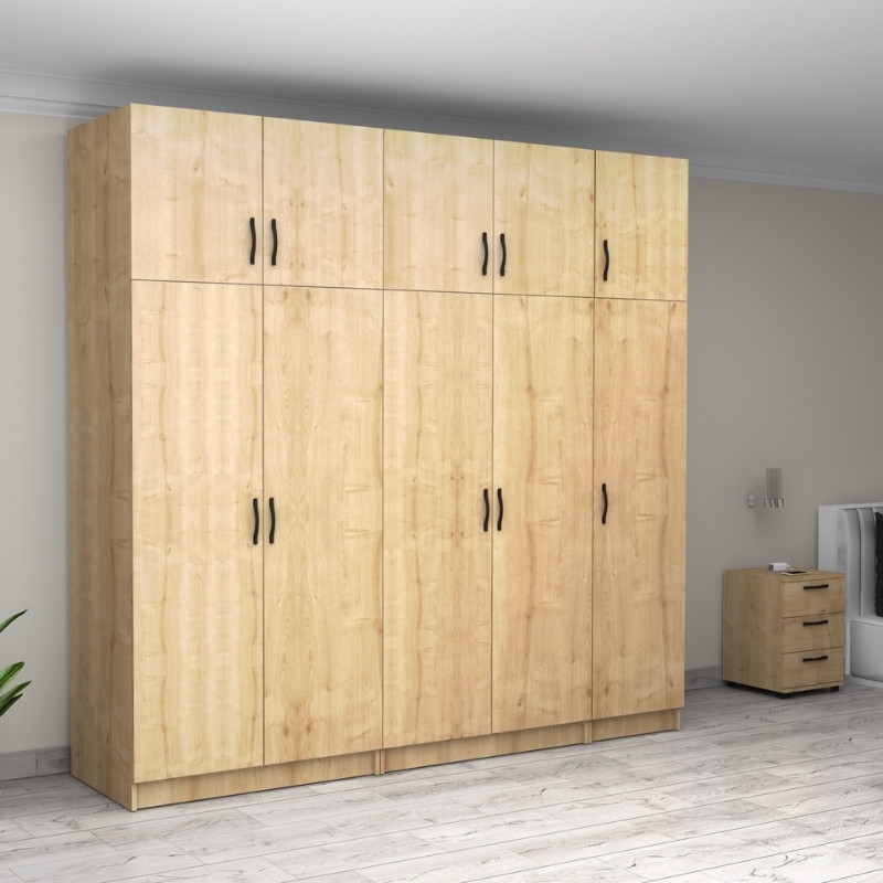 <strong>Ντουλάπα ρούχων Victoria Megapap πεντάφυλλη με πατάρι χρώμα φυσικό οξιάς 250x60x240εκ.</strong> <br><br>Εάν ψάχνετε μια μεγάλη ντουλάπα για να τακτοποιήσετε όλα σας τα ρούχα και αξεσουάρ η ντουλάπα Victoria είναι η ιδανική επιλογή. Κλασσική γραμμή και κατασκευή από ποιοτικά υλικά με μεγάλους χώρους αποθήκευσης που την καθιστούν αναγκαία και απαραίτητη για κάθε χώρο.<br></span> <br><strong>Τεχνικά χαρακτηριστικά:</strong><br><br>
