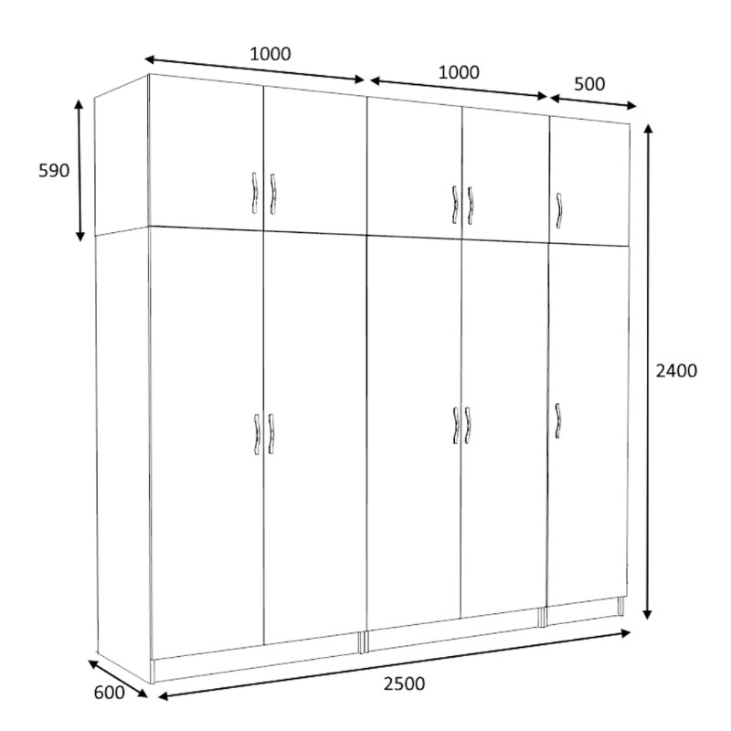 <li>Διαστάσεις ντουλάπας: Μήκος 200 x Βάθος 60 x Ύψος 181 εκ.</li>
