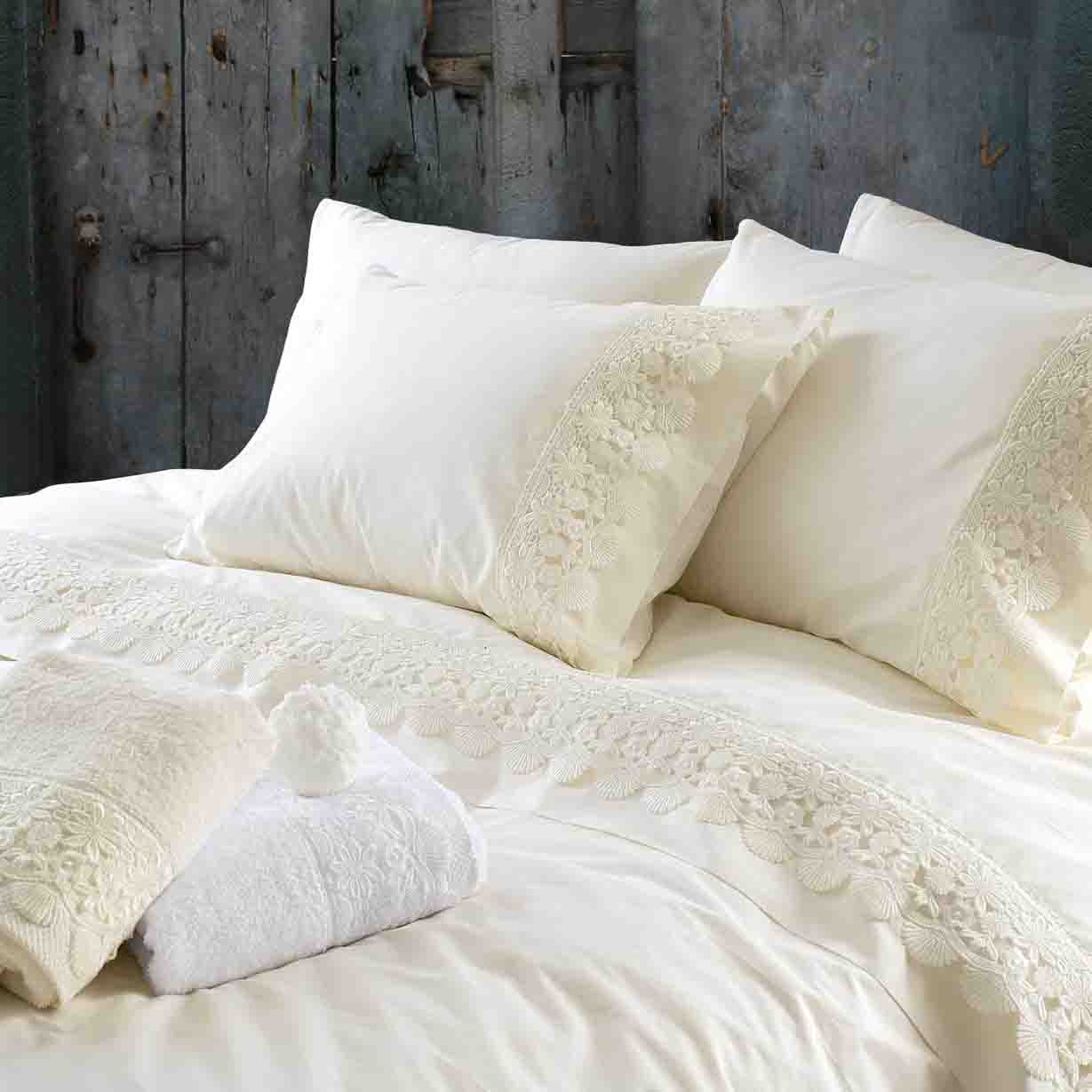 Olivine σετ σεντόνια με δαντέλα εκρού τεσσάρων τεμαχίων
