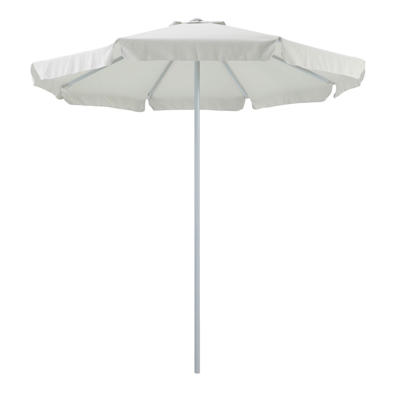 Ομπρέλα επαγγελματική Nagida pakoworld μονοκόμματος ιστός αλουμίνιο Φ2.3m εκρού<br><br>Μία ποιοτική κατασκευή με σκελετό από αλουμίνιο και μετάλλο χρώματος λευκό και επένδυση αδιάβροχου υφάσματος σε χρώμα εκρού. Το προϊόν αυτό μπορεί να χρησιμοποιηθεί στο σπίτι σας και στον επαγγελματικό σας χώρο.<br><br>Τεχνικά χαρακτηριστικά:<br>Πλάτος: Φ2.3μ.<br>Ομπρέλα Στρογγυλή<br>Άνοιγμα με push up opening system <br>Διάμετρος Ιστού 38mm - 8 ακτίνες<br>Ιστός: Μονοκόμματος μεταλλικός<br>Ακτίνα : 12x18mm<br>Ύφασμα : Πολυεστέρας 240gr - Xρώμα εκρού - Αδιάβροχο <br>Υψος ομπρέλας χωρίς την βάση 235εκ.<br>Διαθέτει : Αεραγωγό-Εξαερισμό ο οποίος επιτρέπει την κυκλοφορία του αέρα, μειώνοντας ταυτόχρονα την πίεση του<br>Η Βάση δεν συμπεριλαμβάνεται.<br><br>Η ομπρέλα συνιστάται να παραμένει κλειστή όταν δεν χρησιμοποιείται για αποφυγή ανεπιθύμητης φθοράς.<br><br>Παρατηρήσεις:<br>Το προιόν παραδίδεται αμοντάριστο στην εργοστασιακή του συσκευασία.<br>Η χρωματική απόχρωση του προϊόντος ενδέχεται να διαφέρει ελαφρώς σε σχέση με την φωτογραφική απεικόνισή του στην οθόνη σας.<br>