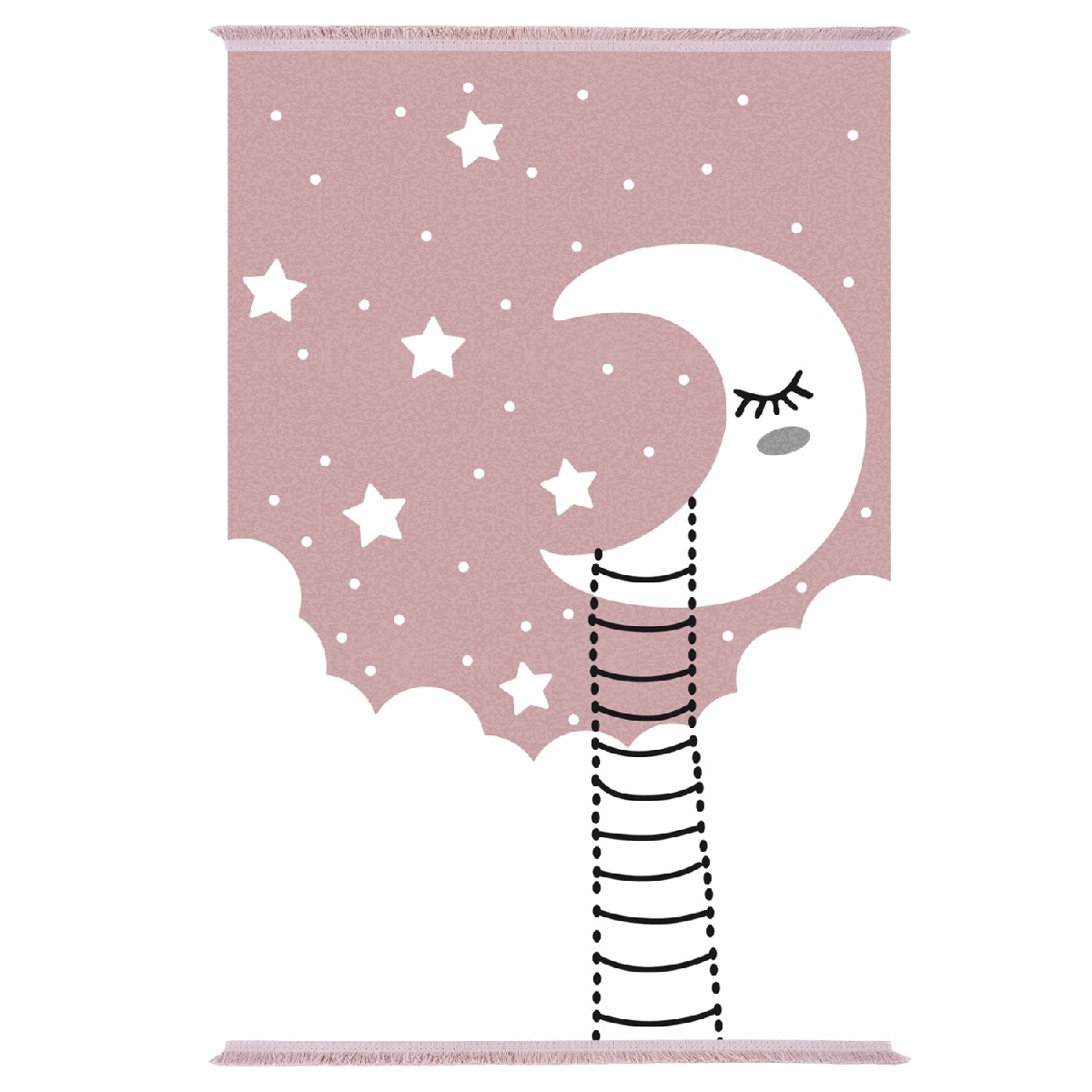 Αυτό το όμορφο χαλί με ΡΟΖ και ΑΣΠΡΟ φόντο σε όλη την επιφάνεια του χαλιού, θα μαγνητίσει την φαντασία των μικρών αλλά και των μεγάλων. Το σχέδιο του χαλιού απεικονίζει ένα κοιμώμενο μισοφέγγαρο και μια σκάλα που θα εξάψει την φαντασία των παιδιών!<br />
