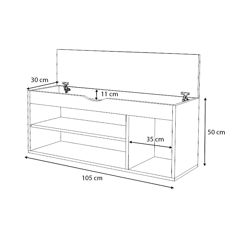 <li>Διαστάσεις: Μήκος 105 x Βάθος 30 x Ύψος 48 εκ.</li>