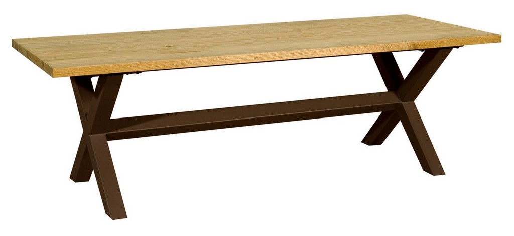 Παραλληλόγραμμο τραπέζι με μεταλλική βάση και επιφάνεια από ξύλο οξυάς 230x95x72 εκ