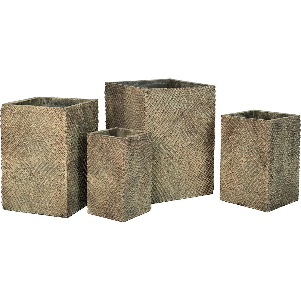 Πήλινα τετράγωνα κασπώ με μοτίβο σε μπεζ χρώμα σετ 4 τεμαχίων