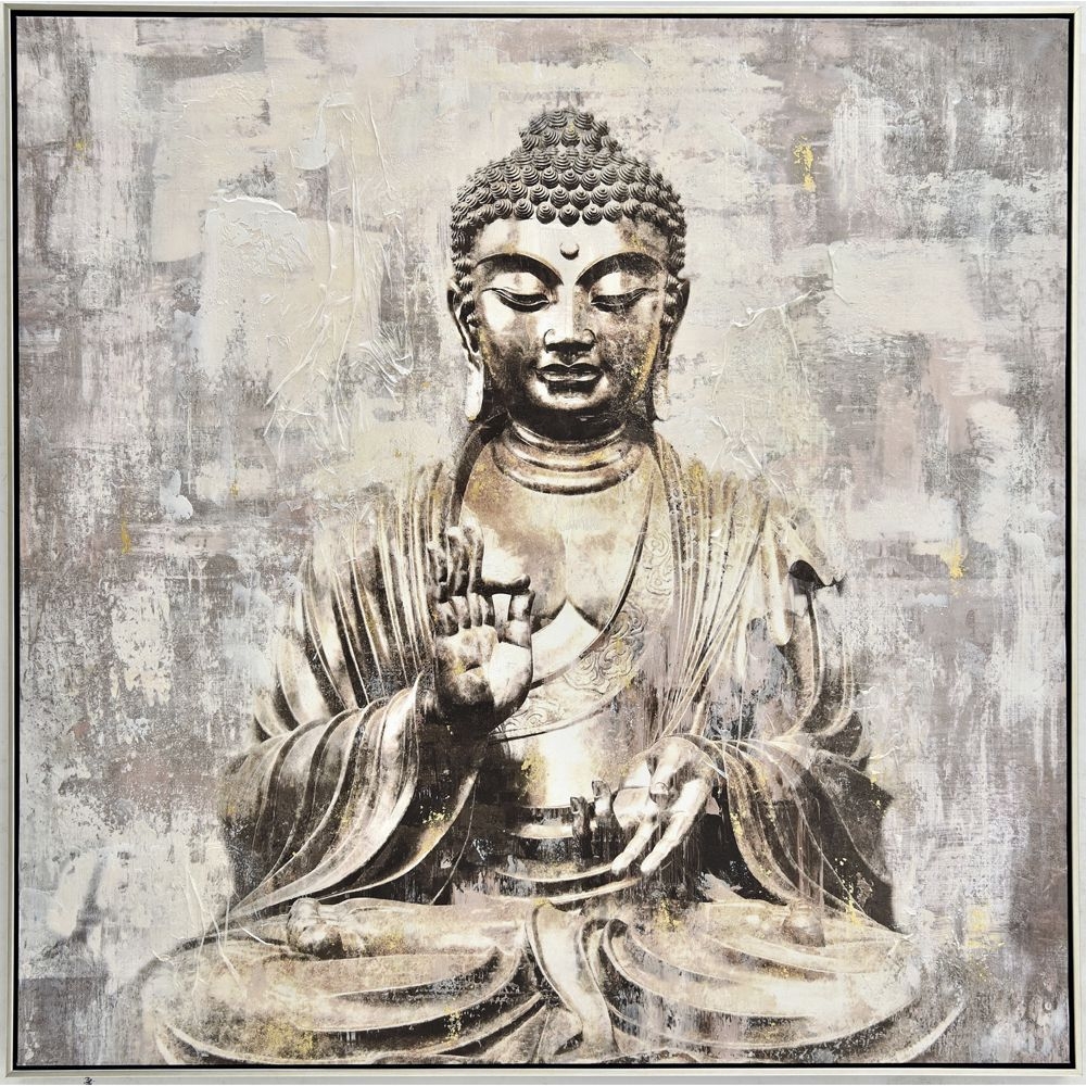Πίνακας με καθιστό Βούδα σε ασημί κορνίζα 102x102 εκ
