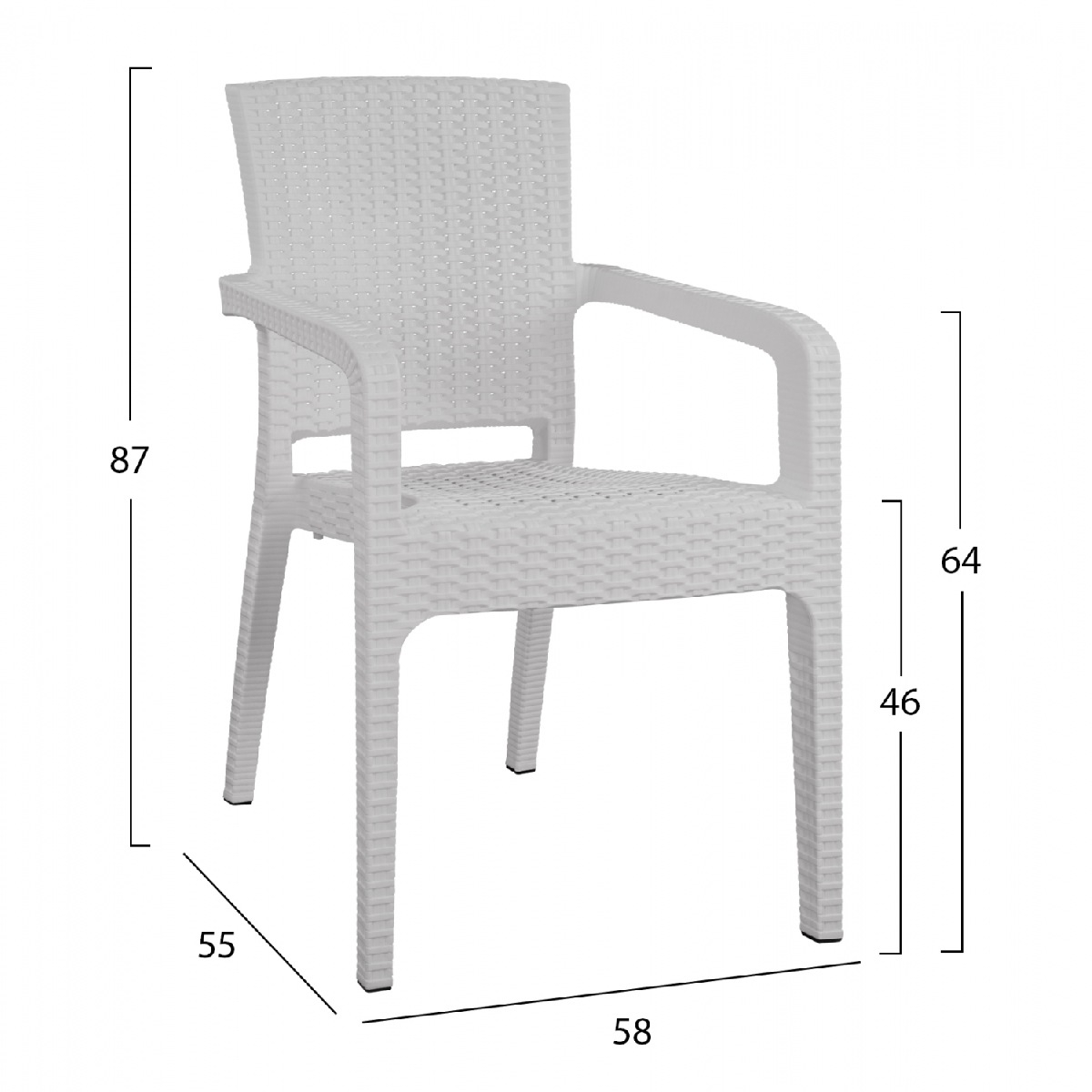 Καρέκλα με μπράτσα απο μασίφ πρωτογενές πολυπροπυλένιο σε μοντέρνο σχεδιασμό και μεγάλη αντοχή σε λευκή απόχρωση.<br />