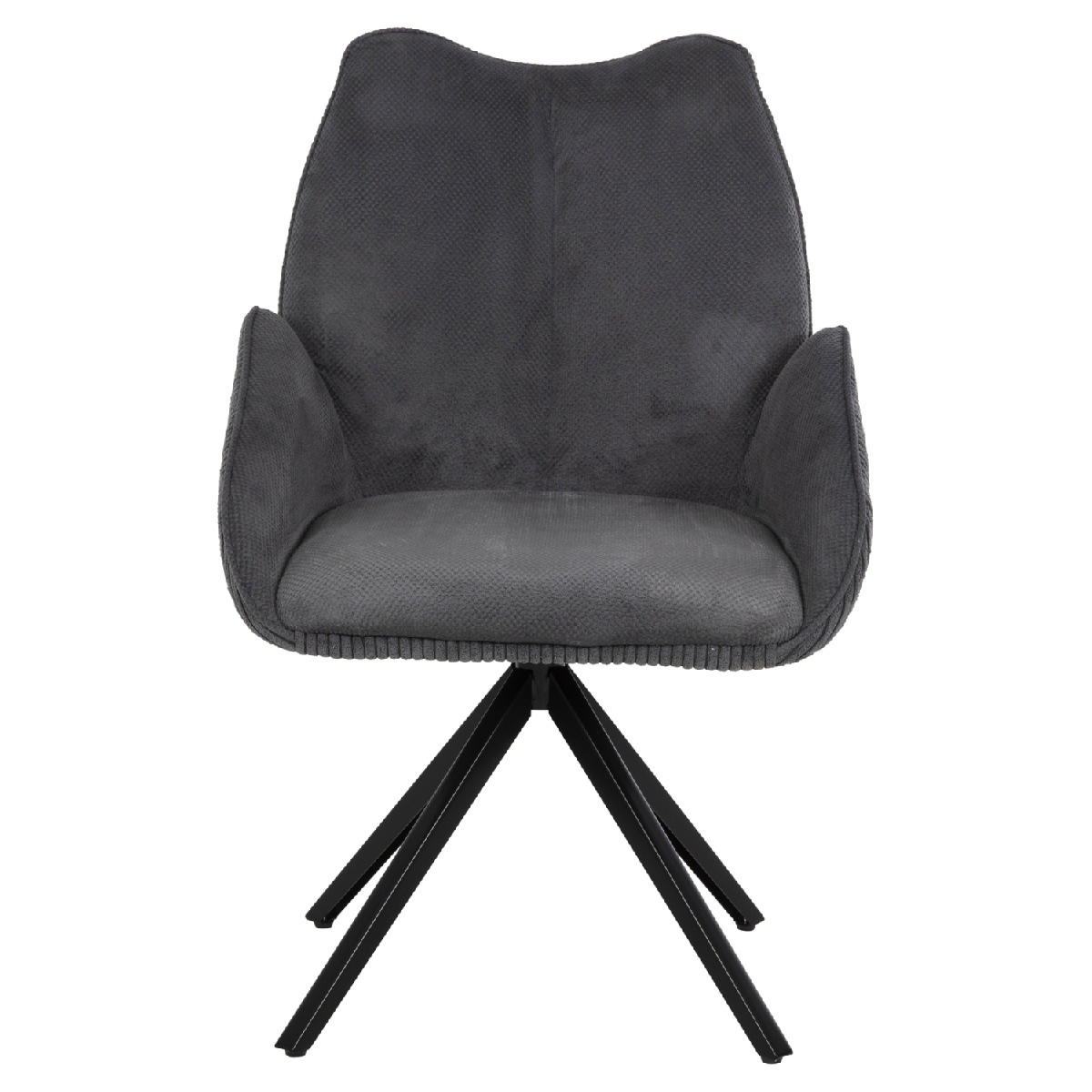 Αυτό είναι το πολυθρονάκι SHAI σε ΓΚΡΙ χρώμα με 4 μεταλλικά πόδια σε ΜΑΥΡΟ χρώμα. Η πλάτη και το κάθισμα είναι φαρδιά και αναπαυτικά ενώ το μαξιλάρι του καθίσματος δεν αφαιρείται. Τα μπράτσα είναι χαμηλά ενώ το ύφασμα που έχει διαφορετικό pattern στην εξωτερική πλευρά της πολυθρόνας, είναι υψηλής ποιότητας και δίνει μια αίσθηση πολυτέλειας. Το χαρακτηριστικό, όμως, που κάνει αυτή την πολυθρόνα να ξεχωρίζει είναι ότι τα πόδια έχουν διάταξη «αστέρι», δίνοντας την εντύπωση ότι η πολυθρόνα είναι περιστρεφόμενη.<br />
