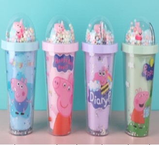 Ποτήρι Διπλού τοιχώματος με σχέδιο ΠΕΠΑ, με Καπάκι Φούσκα Και καλαμάκι