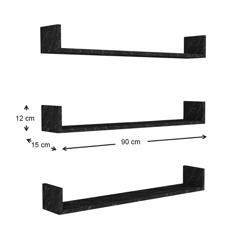 Ραφιέρα τοίχου Tyrion Megapap 3 τεμαχίων από μελαμίνη χρώμα μαύρο εφέ μαρμάρου 90x15x12εκ.<br></span>