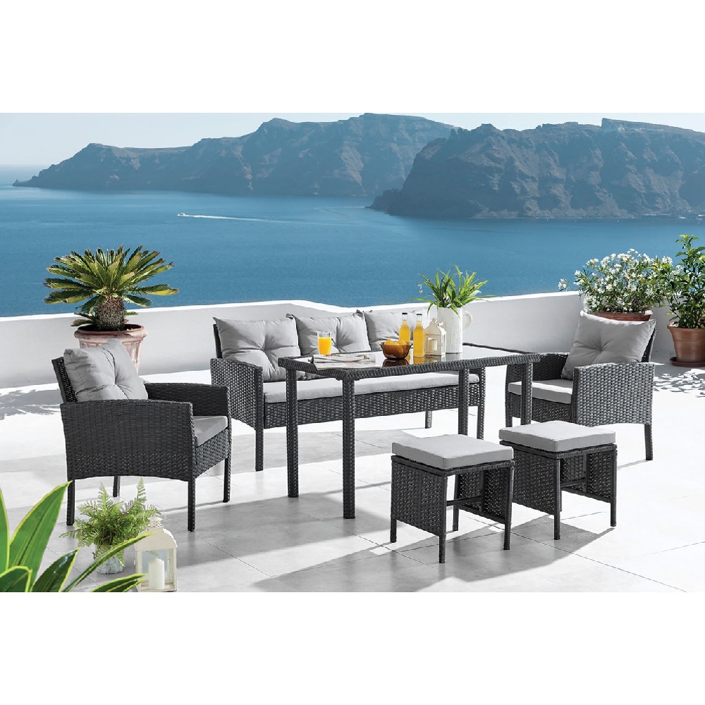 Ε6866 SANTO Set Steel (Τραπέζι+Καναπές 3θέσιος+2 Πολυθρόνες+2 Σκαμπό) Wicker Dark Grey/Μαξιλάρια Γκρι<br>