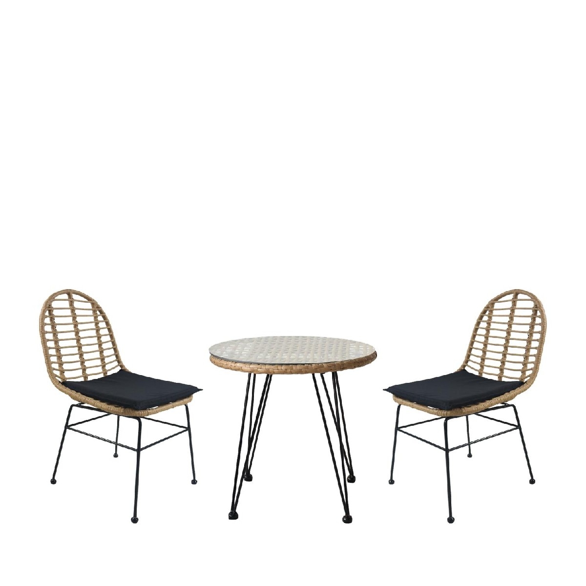 ΣΕΤ ΤΡΑΠΕΖΑΡΙΑ ΚΗΠΟΥ ARTELIBRE EUSEBIO ΦΥΣΙΚΟ/ΜΑΥΡΟ ΜΕΤΑΛΛΟ/RATTAN ΜΕ 2 ΚΑΡΕΚΛΕΣ 14990326