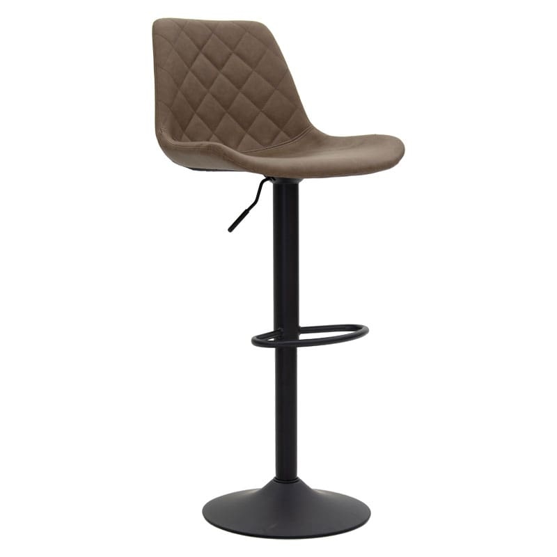 <p>Τεχνικά χαρακτηριστικά:<br />– Διαθέτει μηχανισμό με ψηλό αμορτισέρ αερίου για την δυνατότητα αυξομείωσης και ρύθμισης του ύψους.<br />– Έδρα επενδυμένη με καφέ τεχνόδερμα άριστης ποιότητας. Προσφέρει αντοχή στη φθορά και είναι εύκολο στο καθάρισμα.<br />– Χαμηλή πλάτη που αγκαλιάζει το σώμα και στηρίζει τη σπονδυλική στήλη.<br />– Ασφαλή βάση στήριξης από μαύρο μέταλλο για μεγαλύτερη ανθεκτικότητα, με ενσωματωμένο υποπόδιο για την ξεκούραση των ποδιών.<br />– Δυνατότητα εύκολης περιστροφής προς κάθε κατεύθυνση.</p>