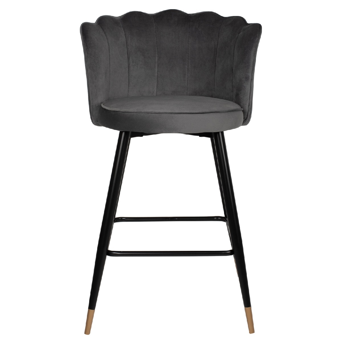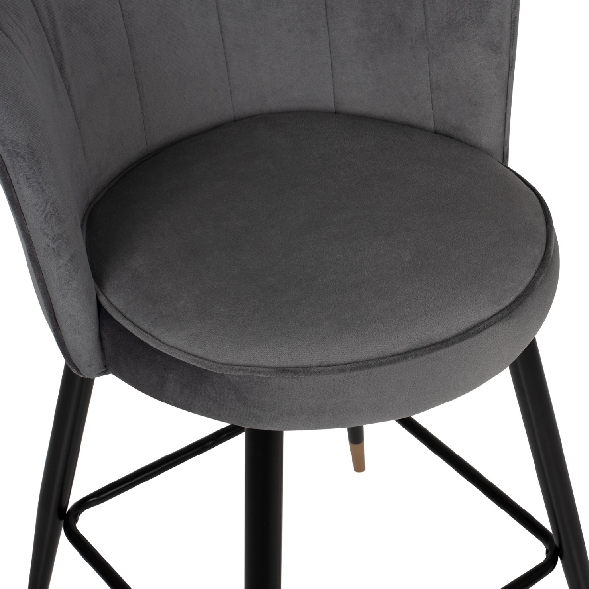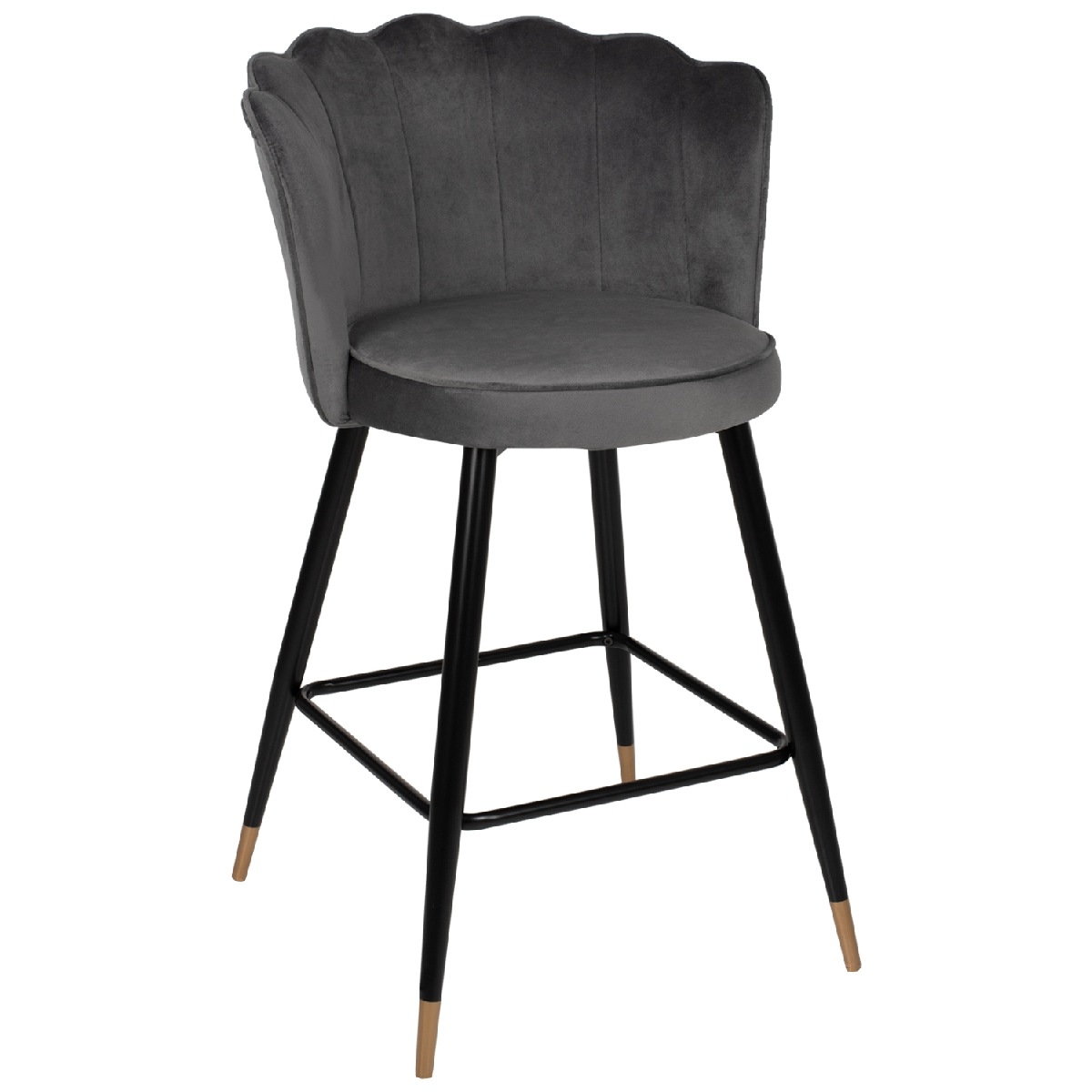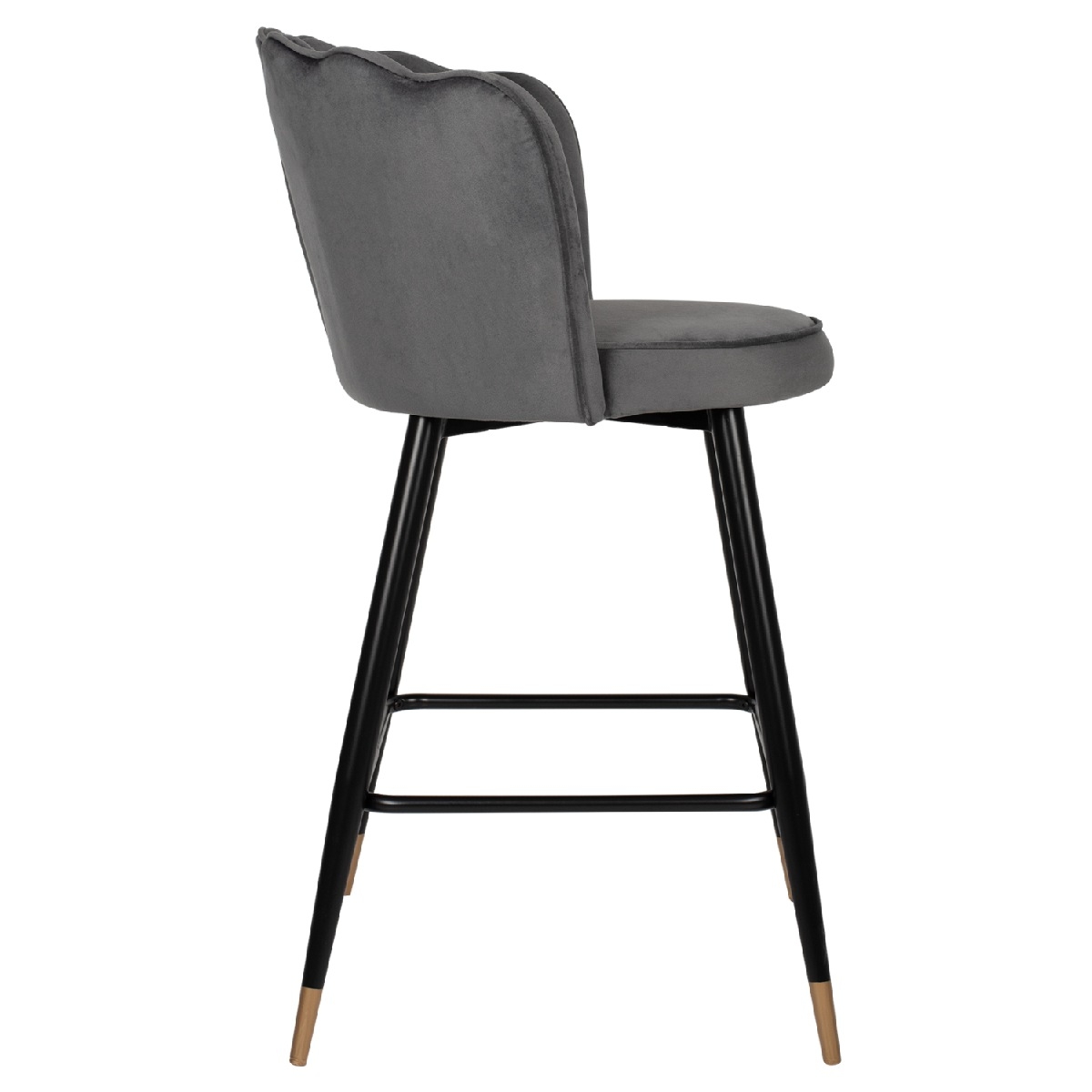 Επαγγελματικό σκαμπό bar «VESNA» σε ΓΚΡΙ χρώμα με μαύρο μεταλλικό σκελετό. Τα μεταλλικά πόδια ενώνονται μεταξύ τους περίπου στη μέση τους με μια μαύρη μεταλλική ράγα. Το «VESNA» είναι λιτό, ποιοτικό και κομψό στην όψη, και σίγουρα τραβάει τα βλέμματα με το βελούδινο ύφασμα με το οποίο είναι επενδυμένο. Είναι μεσαίου ύψους με πλάτη, η οποία έχει την όψη ανοιχτού όστρακου δίνοντας μια ιδιαίτερη αισθητική στον χώρο.<br />