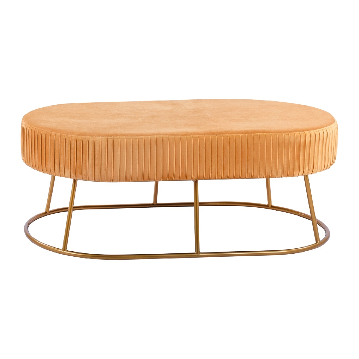 Σκαμπό παγκάκι ALINAFE από βελούδο σε χρυσή απόχρωση με μεταλλική βάση.<br />