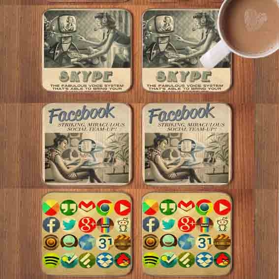 Σουβέρ ξύλινα χειροποίητα Facebook σετ 6 τεμάχια