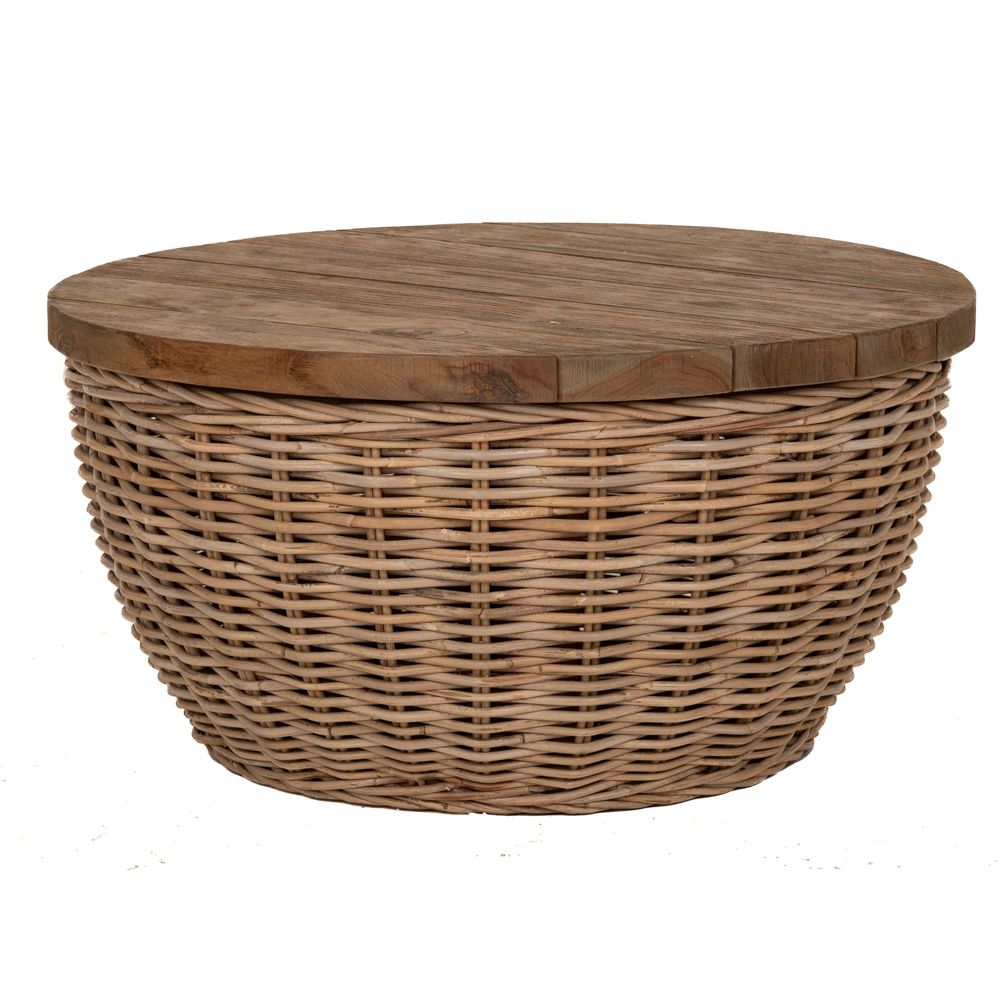 Στρογγυλό τραπεζάκι με ξύλινη επιφάνεια και βάση από ρατάν σε φυσική απόχρωση 65x34 εκ