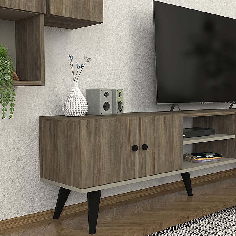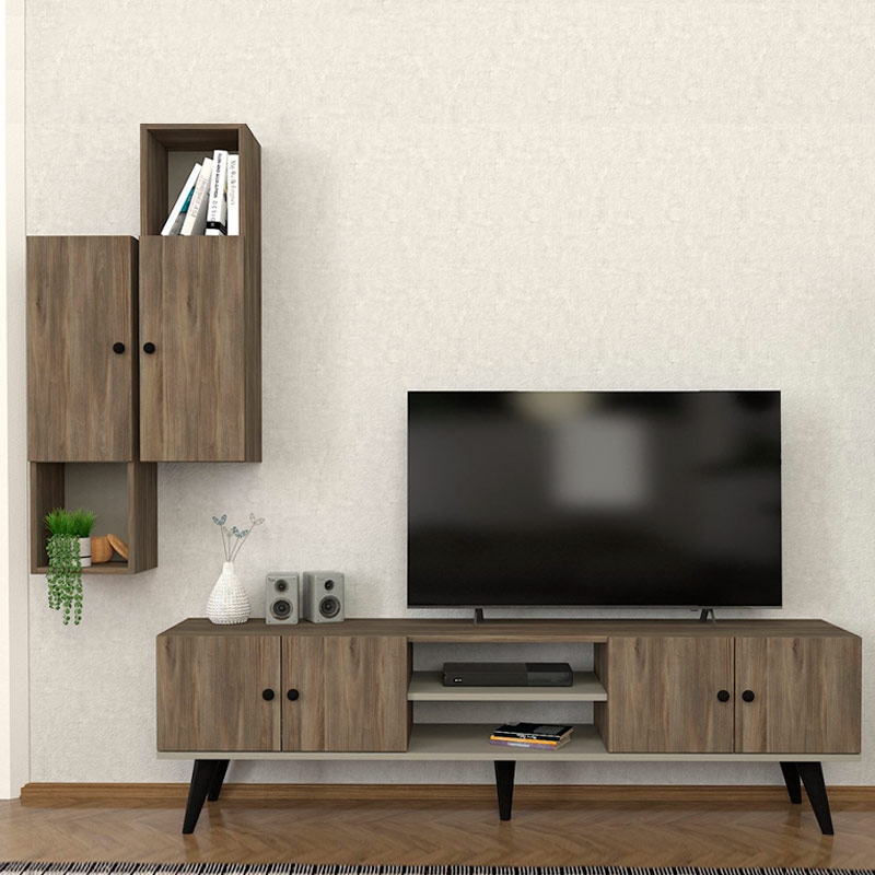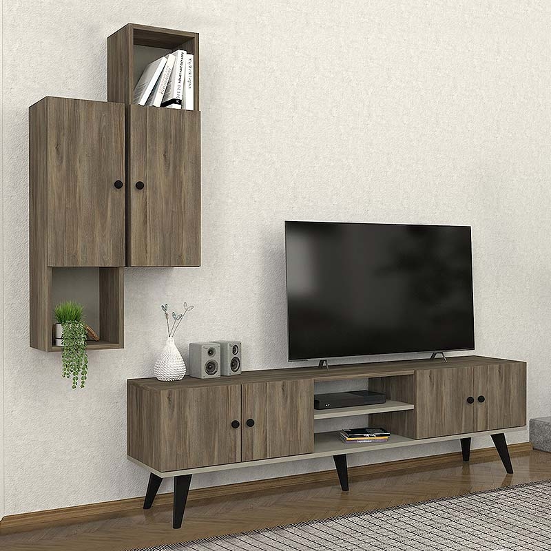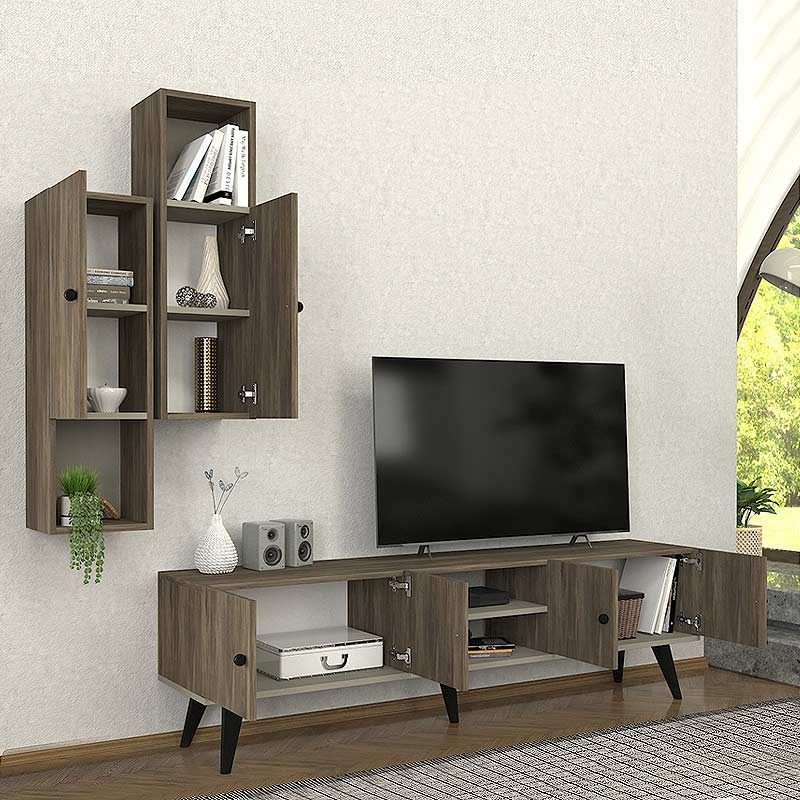 Σύνθεση τηλεόρασης Bergamo Megapap από μελαμίνη χρώμα σκούρο καρυδί 180x37x52εκ.<br></span>