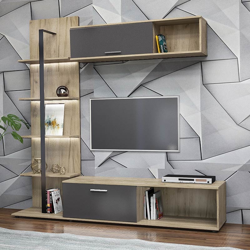Σύνθεση τηλεόρασης Ethel Megapap από μελαμίνη χρώμα γκρι oak - ανθρακί 190x40x190εκ.<br></span>