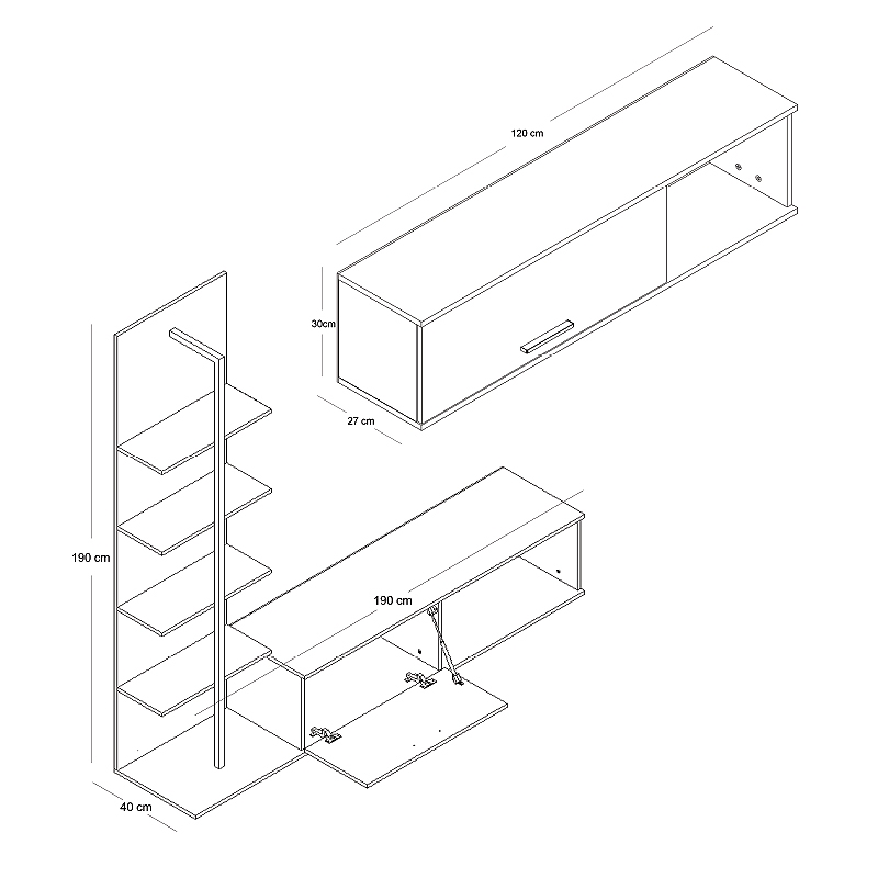 <li>Η σύνθεση αποτελείται ένα επίπλο τηλεόρασης, μία ραφιέρα για τα βιβλία και τα διακοσμητικά σας κι ένα επιτοίχιο ντουλάπι.</li>