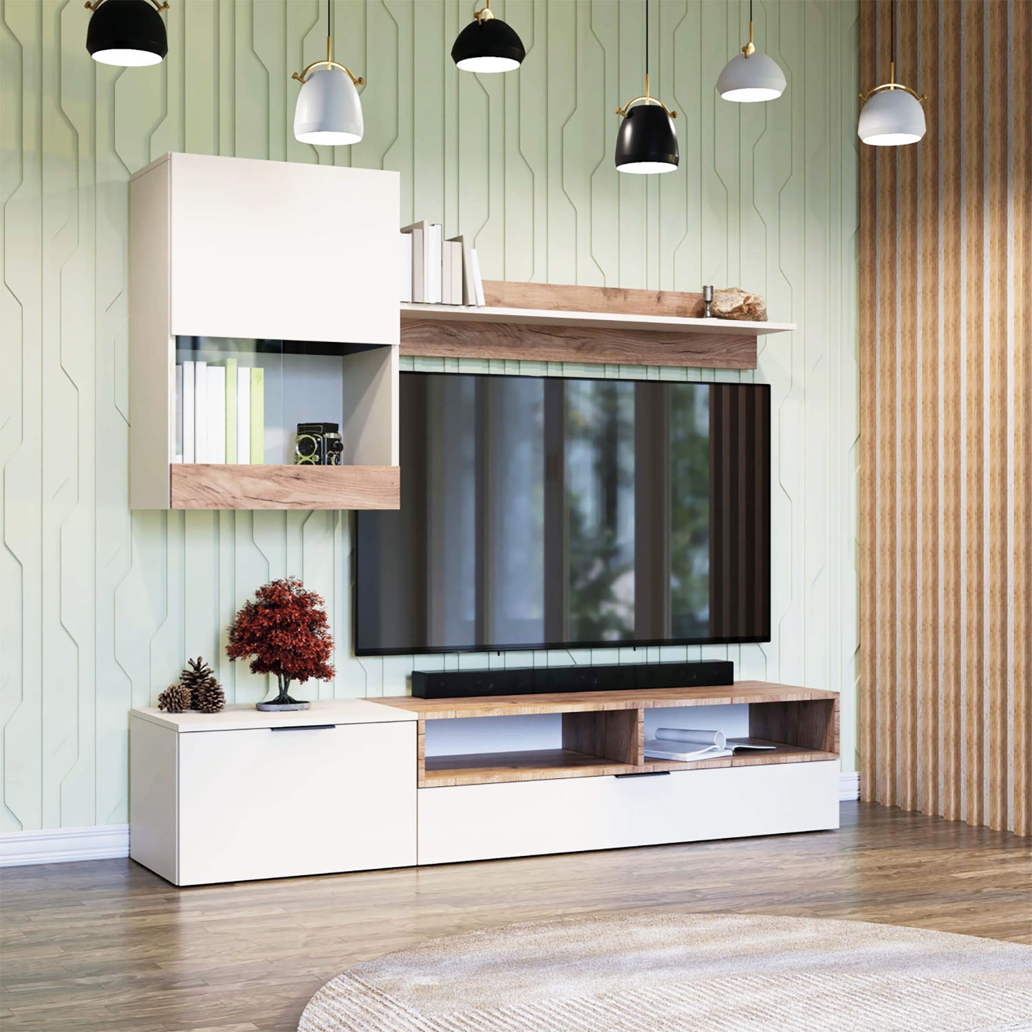 <p>Σύνθεση Τηλεόρασης Morocco, εξαιρετικής ποιότητας και υψηλής αντοχής, με ιδιαίτερο συνδυασμό χρωμάτων, λευκό με χρυσό δρυς.<br>