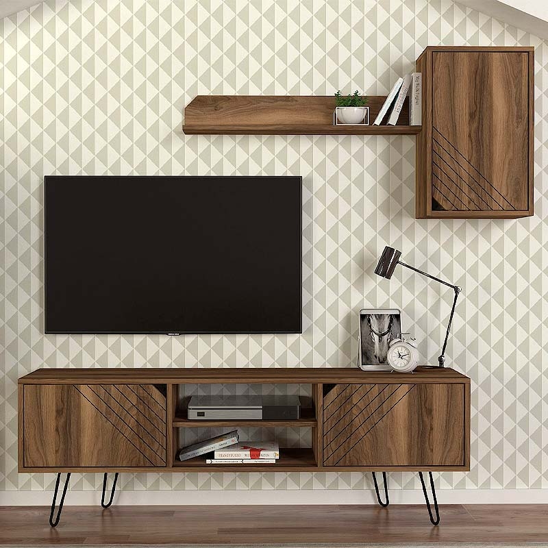 Σύνθεση τηλεόρασης Norma Megapap από μελαμίνη χρώμα καρυδί 160x35x53εκ.<br></span>