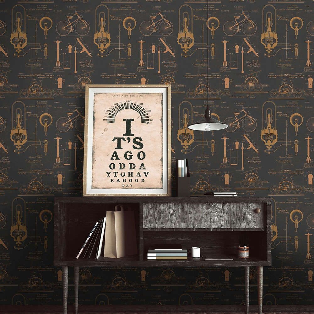 Ταπετσαρία Patents WP20048 Black-White-Orange MindTheGap 52x300cm